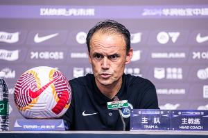体育资讯4月19日讯 本轮中超,梅州客家主场迎战深圳新鹏城。今天下午,深圳新鹏城主帅拉坦齐奥携队员张晓彬出席了赛前发布会。